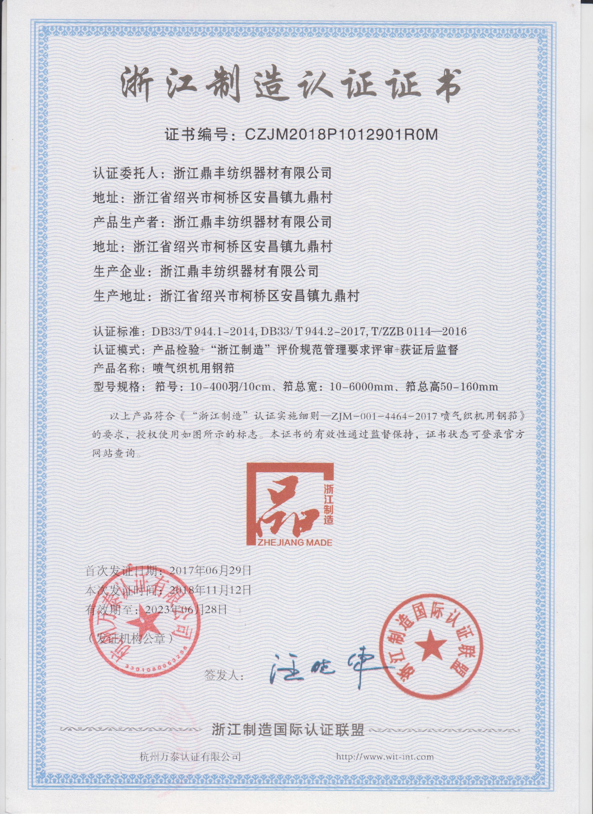 公司現(xiàn)有固定資產6000余萬元,員工300余人,現(xiàn)具有年產噴氣異型筘12萬米,劍桿筘32萬米,噴水筘5萬米,綜框20萬片,鋼片綜2億片,停經(jīng)片1.5億片, 織軸1.2萬套的生產能力。公司“越泉”商標被評為“中國馳名商標”。公司通過ISO9001 :2015國際質量體系認證,ISO14001:2015國際環(huán)境管理體系認證,ISO45001:2018國際職業(yè)健康安全管理體系認證,噴氣織機用鋼筘和織機用鋁合金綜框獲得“浙江制造”品牌認證,公司擁有自營進出口權,產品暢銷全國并遠銷印度、巴基斯坦、土耳其、埃及、哥倫比亞、意大利等國家和地區(qū)。